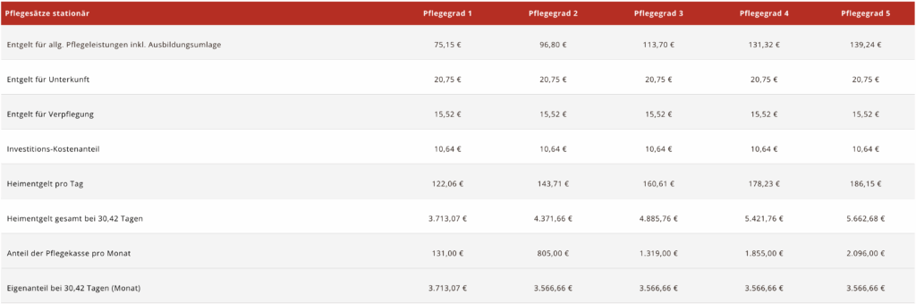 Pflegesätze stationär Pflegegrad 1 Pflegegrad 2 Pflegegrad 3 Pflegegrad 4 Pflegegrad 5
