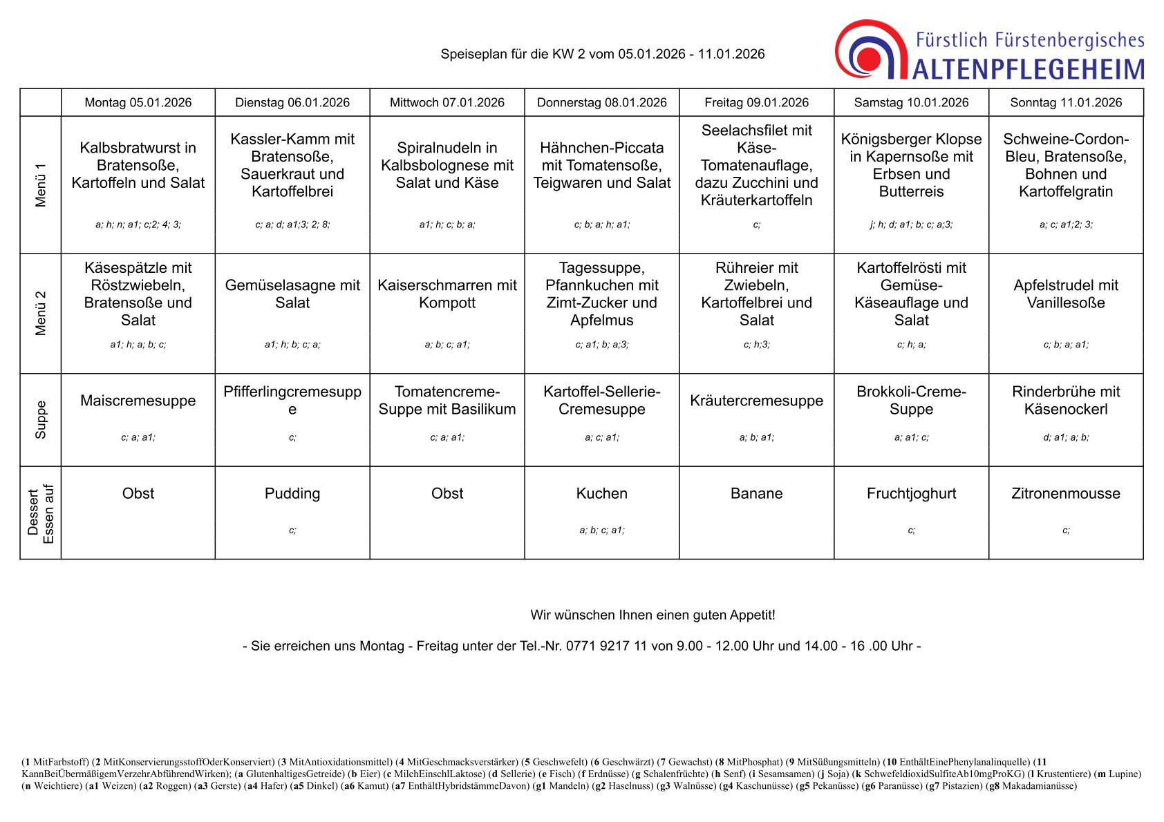 - Es ist möglich, jeweils bis zum Vortag telefonisch oder online zu bestellen