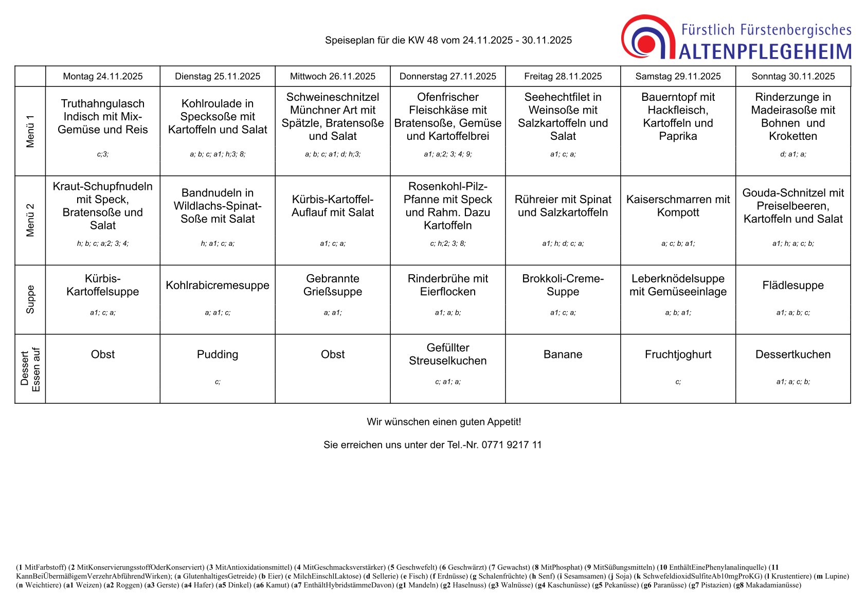 ggf. angepasster Speiseplan