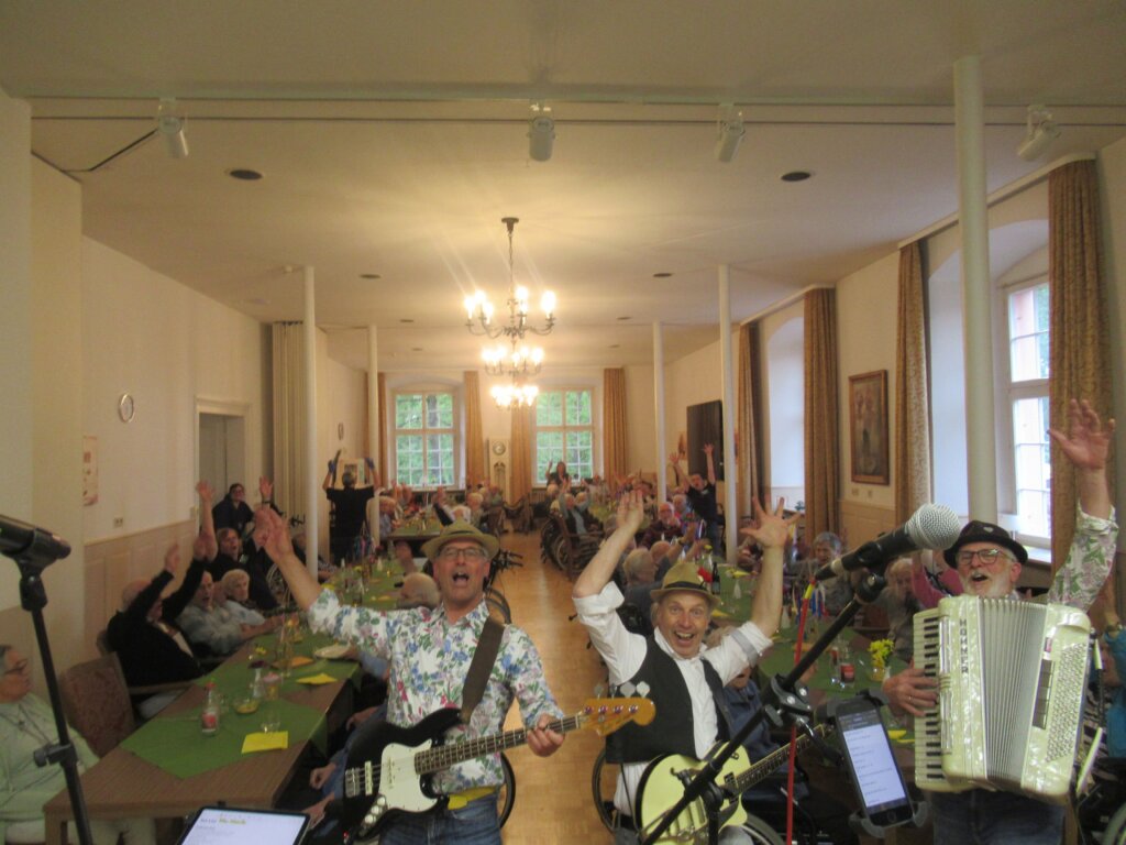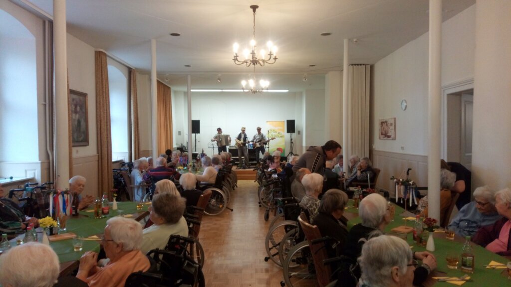 Traditionell begrüßen wir den Mai mit einem besonders bunten Fest. Zuerst wird ein Maibaum im Innenhof aufgestellt und im Anschluss findet im großen Saal ein großes Fest statt. Hierfür ist der Saal festlich mit vielen kleinen, selbstgebastelten Maibäumen geschmückt. Für die richtige Stimmung sorgen „die Zitros“ mit Gitarre, Gesang und Akkordeon.